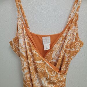 Joie Midi Ruched Sundress Butterscotch Botanical Floral Print Size Small