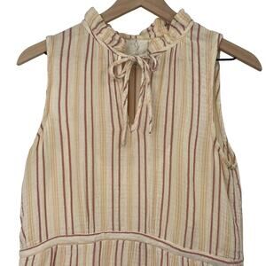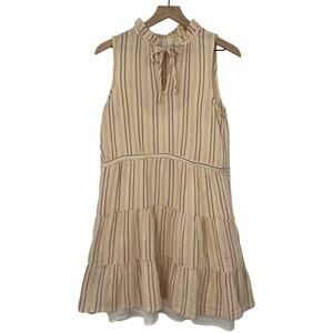 Joie Mini Swing Dress Striped Cotton Keyhole Neckline Sleeveless Cream Womens S