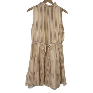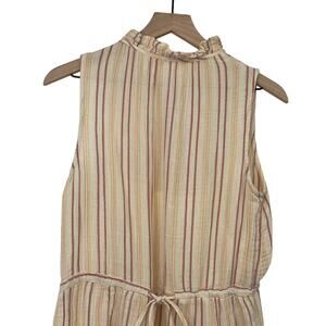Joie Mini Swing Dress Striped Cotton Keyhole Neckline Sleeveless Cream