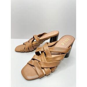 Joie Mules Size 7 Brown Leather Crisscross Stacked Block Heel