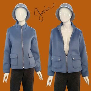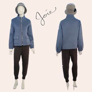 JOIE |NEW| Scandinavian DUSTY BLUE Exposed Zip Front Flap Pockets Stand Collar Shirt Jacket Coat M. The Dusty Blue Shirt Jacket is reminiscent of high fashion with minimalist/modern details. Featuring a wool blend fabric, stand collar, and flap pockets; this layer is effortlessly chic. From work to brunch, this jacket-coat pairs easily with everything in your wardrobe all year long. You will love it! See pictures for all details and the Table Chart in the pics to size this jacket. Specific measurements are provided upon request.