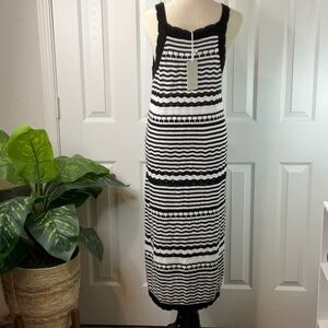 Joie NWT Black White Crochet Knit Sleeveless Midi Dress Size Large
