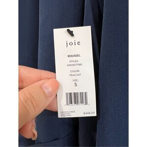 Joie NWT Roussel Ruched Ruffle-Trim Silk Navy Blue Midi Dress Sz S