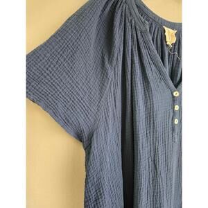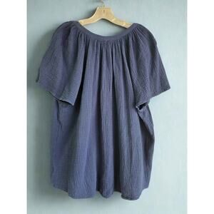Joie Navy Blue Crinkle Cotton Gauze Peasant Blouse Top 3X Plus Size