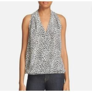Joie Naya B Silk Halter Blouse in Caviar Women's M Leopard Print Gray Black