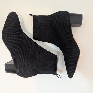 Excellent condition knit pull-on booties from Joie. Black. Size 10. No tears or stains in knit fabric, soles in good condition. 11" horizontal measurement heel-to-toe. 2" heel elevation. 6" rise of bootie from bottom of foot.