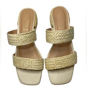 Joie Niki Braided Straw Square Toe Block Heel Sandal Sz 8.5
