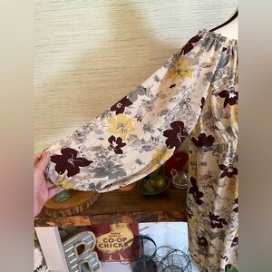 Joie Nour Dress Women's Med Ivory Burgundy Floral Silk Long Sleeve Babydoll