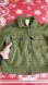 Classic olive wool jacket with classic design. front chest pockets, pockets at hip, button cuffs, button down front, and extra spare button included!