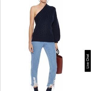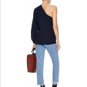 Joie One-Shoulder Navy Cable Knit Sweater
