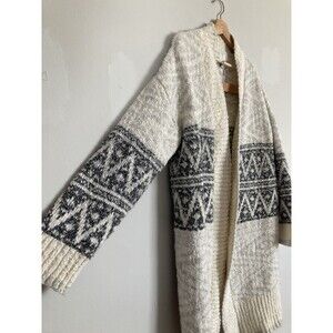 Joie Open Front Knit Cardigan LARGE Long Line Ivory Boho