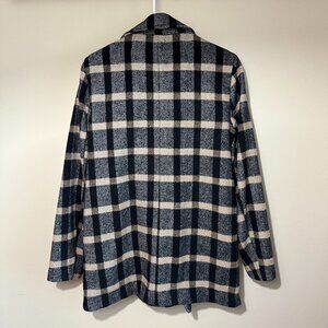 Style: Plaid wool-blend coat, shacket, or oversized boyfriend jacket