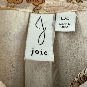 Joie PAISLEY PRINTED RETRO BLOUSE Linen IN BROWN Cream SZ L #1955