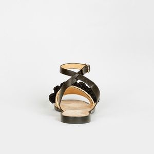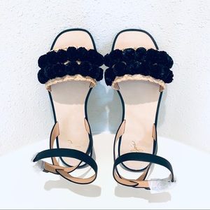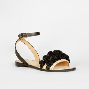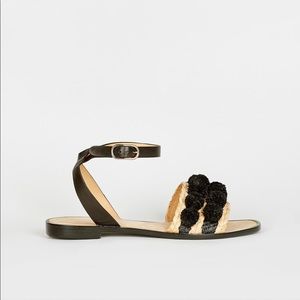 Gorgeous and chic mix of Pom pom & Rafa &leather sandals!Ankle straps white adjustable buckle closure!