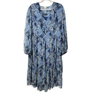 Joie Paisley Dress Sz XXL Semi Sheer Long Sleeve Lined Blue Midi Cottage Boho