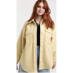 Joie Pale Yellow Fleece Button Up Shacket Size XS Pockets Oversize Jacket S