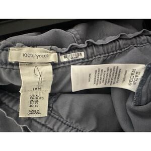 The Joie Pants for women in XL size feature a stylish blue gingham check print with a wide-leg crop design, perfect for a casual or party occasion. These lightweight and comfortable pants have an elastic waist with a paperbag style and a tie sash belt accent. Made of a polyester and cotton blend, these pants are machine washable and easy to care for. The high-rise waist and breathable material make them ideal for wearing in the summer, fall, or spring seasons, aligning with the cottagecore and beachy themes.