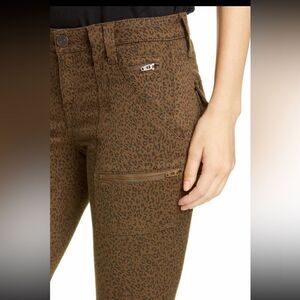 Leopard print skinnies with oversized cargo pockets and zippers.