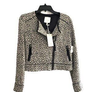Joie Pattyn Animal Print Moto Jacket Size Small Black & Cream