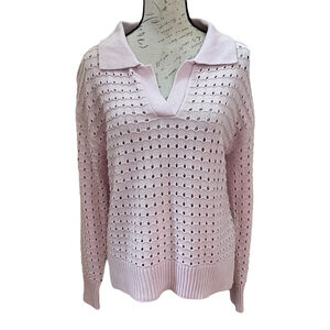 Joie Pink Cotton blend Open Knit Polo Collar V-Neck Long Sleeve Sweater Size S