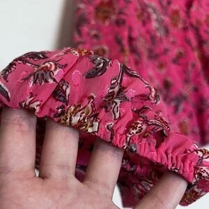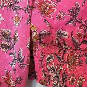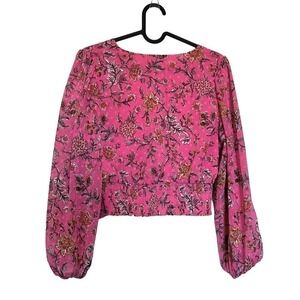 Joie Pink Floral Lined Chiffon Surplus V Neck Cropped Blouse Top Size Medium