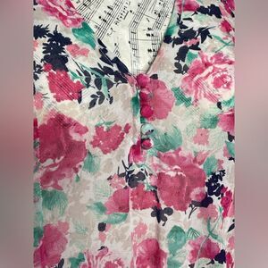 Joie Pink Floral Silk Chiffon V-Neck Pleated Back Blouse Top Size M