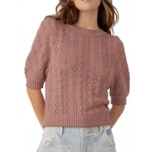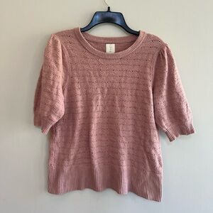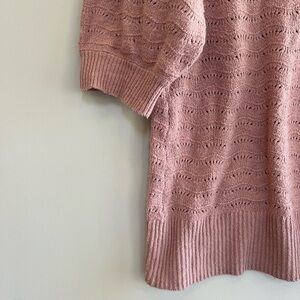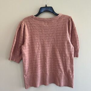 Joie Pink Pointelle Crewneck Sweater with Puff Short Sleeves, Size M