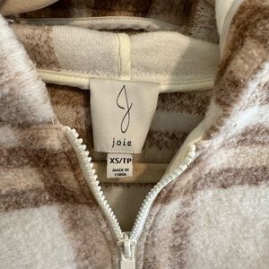 Cozy plaid hooded pullover in cream and brown. Perfect for casual wear.