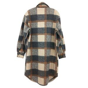 Joie Plaid Shacket Size Small Longline Gray Cream Tan Scandinavian Scandi Girl