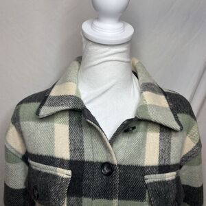 Joie Plaid Wool Flannel Shirt Jacket Comfy Womens Button Up Green Cream Black