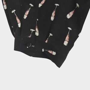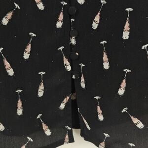 New with tag Joie Purine champagne flute print blouse in women's size large. Black 100% silk. Bracelet length sleeves. V-neckline. Covered button placket.