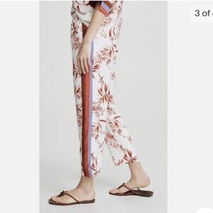 Joie QUISY Orange and White Leaf Print Tropical Cropped Pants XS Striped Sides