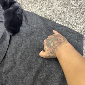 Joie Rabbit Fur Collar Cardigan Womens M Gray Oversized Wool Cashmere Soft Holes