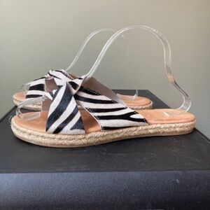 Joie | Rafi Zebra Stripe Patterned Leather Espadrilles Flat Platform Sandal