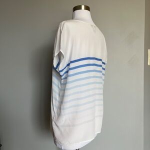 Joie Rain B Savory Silk Ombre Striped Casual Career White Relaxed Tee Blouse Top