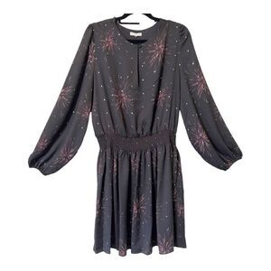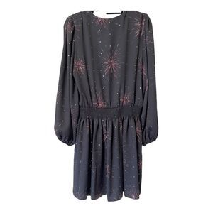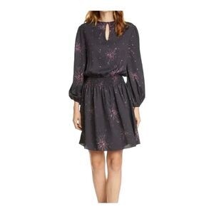 Joie Ramla Firework Keyhole Smocked Waist Dress. Change up the party plan to include fireworks when you show up in this adorably festive dress cut with a keyhole detail and graceful balloon sleeves. Crafted with a subtle starburst print and in an always flattering silhouette, this mini dress is long-sleeved for chilly nights. Wear it with ankle boots or heels depending on who you’re meeting.Features a front keyhole, that we be worn unfastened or fastened for a more polished look. Bishop sleeves and cinched waist makes this perfect for everyone.