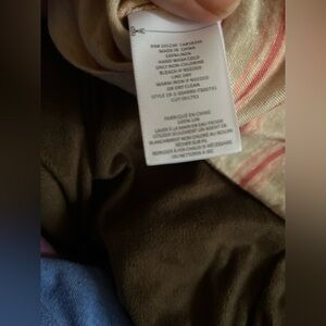 Lightweight Joie “Rayson” racerback tank in breathable 100% linen with soft coral stripes on a flax background. Relaxed drape with a flattering curved hem. Easy summer staple to pair with denim, shorts, or layer under a jacket.