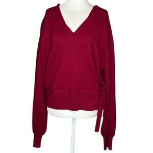 Joie Red V-Neck Sweater with Balloon Sleeves size XL