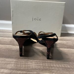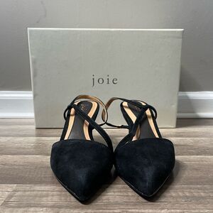 Joie Reno Black Suede Heels Slingbacks 36.5 US 6.5 snakeskin heel New