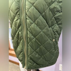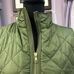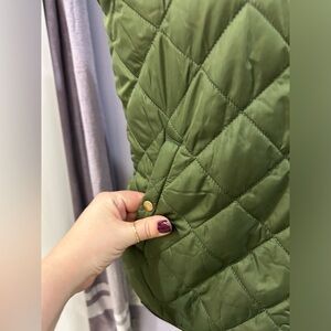 Beautiful green quilted puffer vest with gold hardware. Sherpa interior. Vest is reversible, has pockets both inside and out. Perfect for layering. Gently used in great condition.