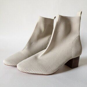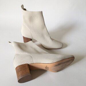 Joie Ribbed Knit Ivory Ankle Boots With 2" Wood Block Heel 8M Neely