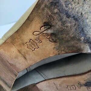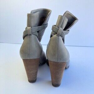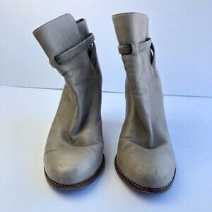 Joie Rigby Heeled Leather Ankle Boots Bootie Stacked Heel, Grayish Tan color, Some signs of wear and scuffing otherwise in good preowned condition. Size 39
