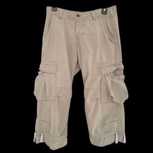 Joie Ripstop Cropped Cargo Pants VTG Y2K MADE IN USA Khaki Button Fly size 27