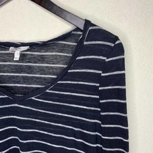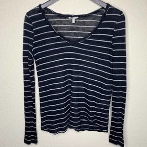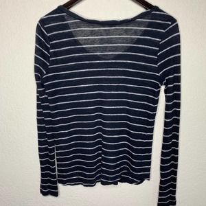 Joie Rishy B long sleeve linen top. Black with white stripes.