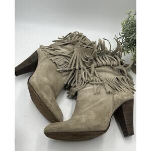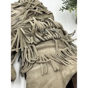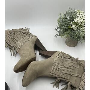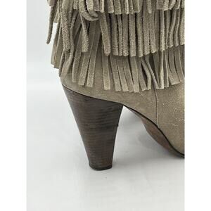 Joie Rockefeller Urban Cowgirl Triple Fringe Beige Suede Heel Boots Sz 41/10.5
