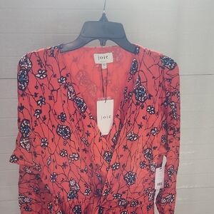Chic Joie dress with vibrant floral design. Features striking orange with purple and white accents. Perfect for any occasion.
