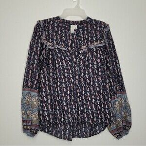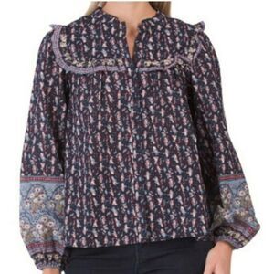 Joie Ruffle Yoke Peasant Long Sleeve Cottagecore Balloon Sleeve Top size medium