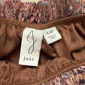 Joie Ruffled Crewneck Sheer Long Sleeve Blouse Smocked Waist Boho Floral Print L