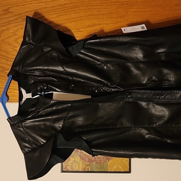 Beautiful black, short sleeved Joie top in vegan leather. Brand new with tags.