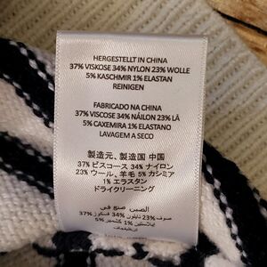 37% viscose, 34% nylon, 23% wool, 5% cashmere, 1% spandex